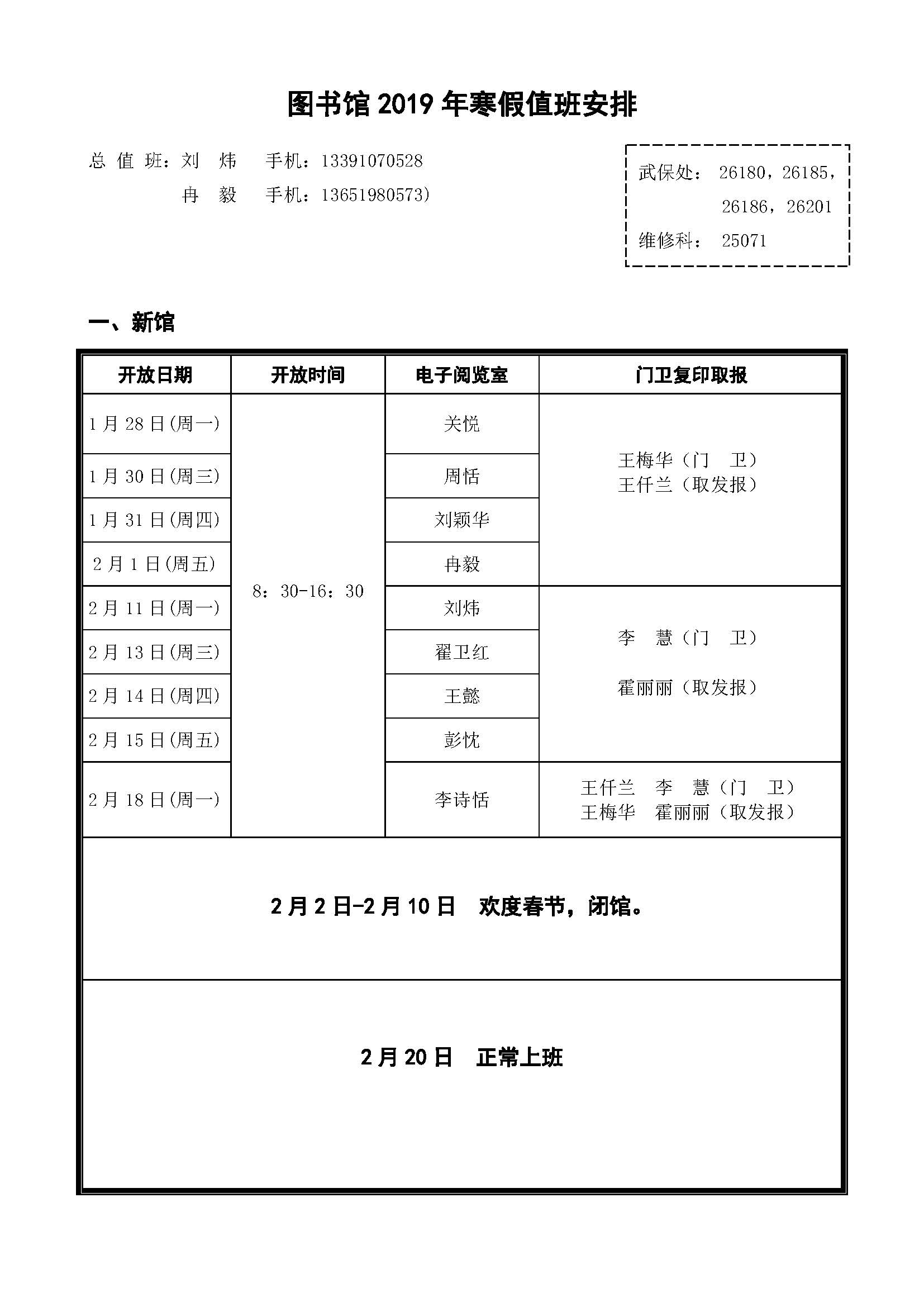 根据学院办公室《关于2018--2019学年第一学期期末及寒假工作安排的通知》和训练安排,假期体育场馆开放时间将有所调整,具体安排如下: