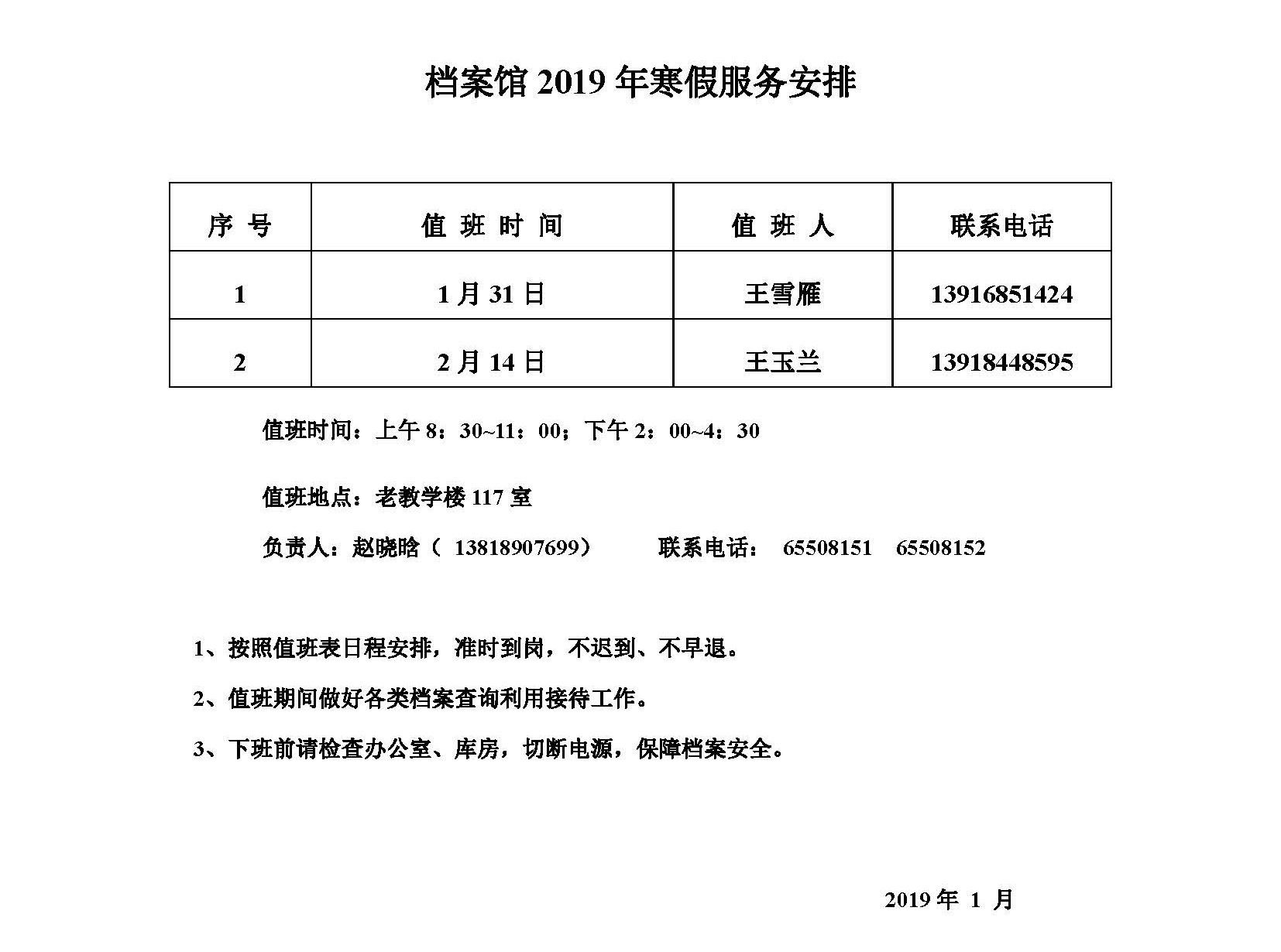 4. 服务保障。图书馆、档案馆、后勤服务中心、财务处、教学训练保障中心等单位要落实好寒假师生服务、综合保障职责。相关安排详见附件。