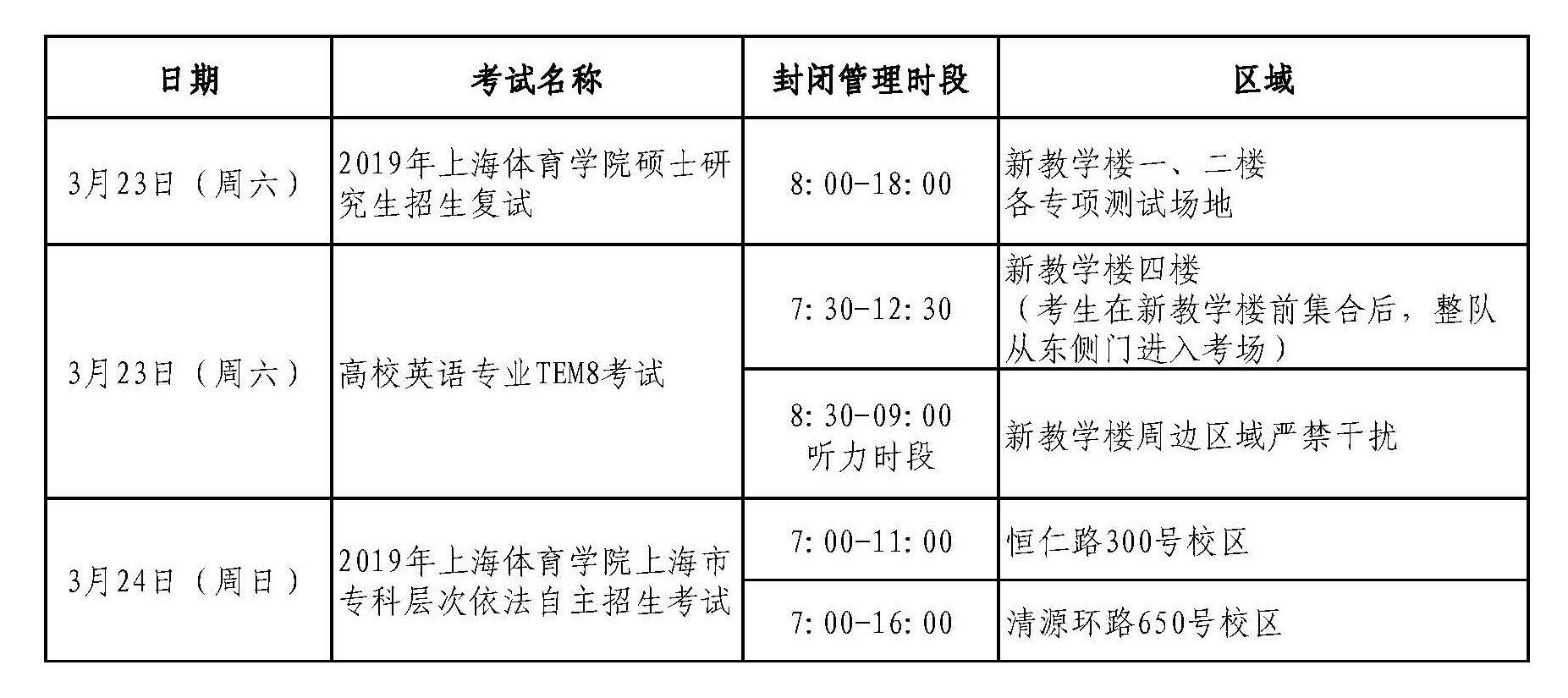 根据考试相关要求,学校对考区实施封闭式管理。具体事宜公告如下: