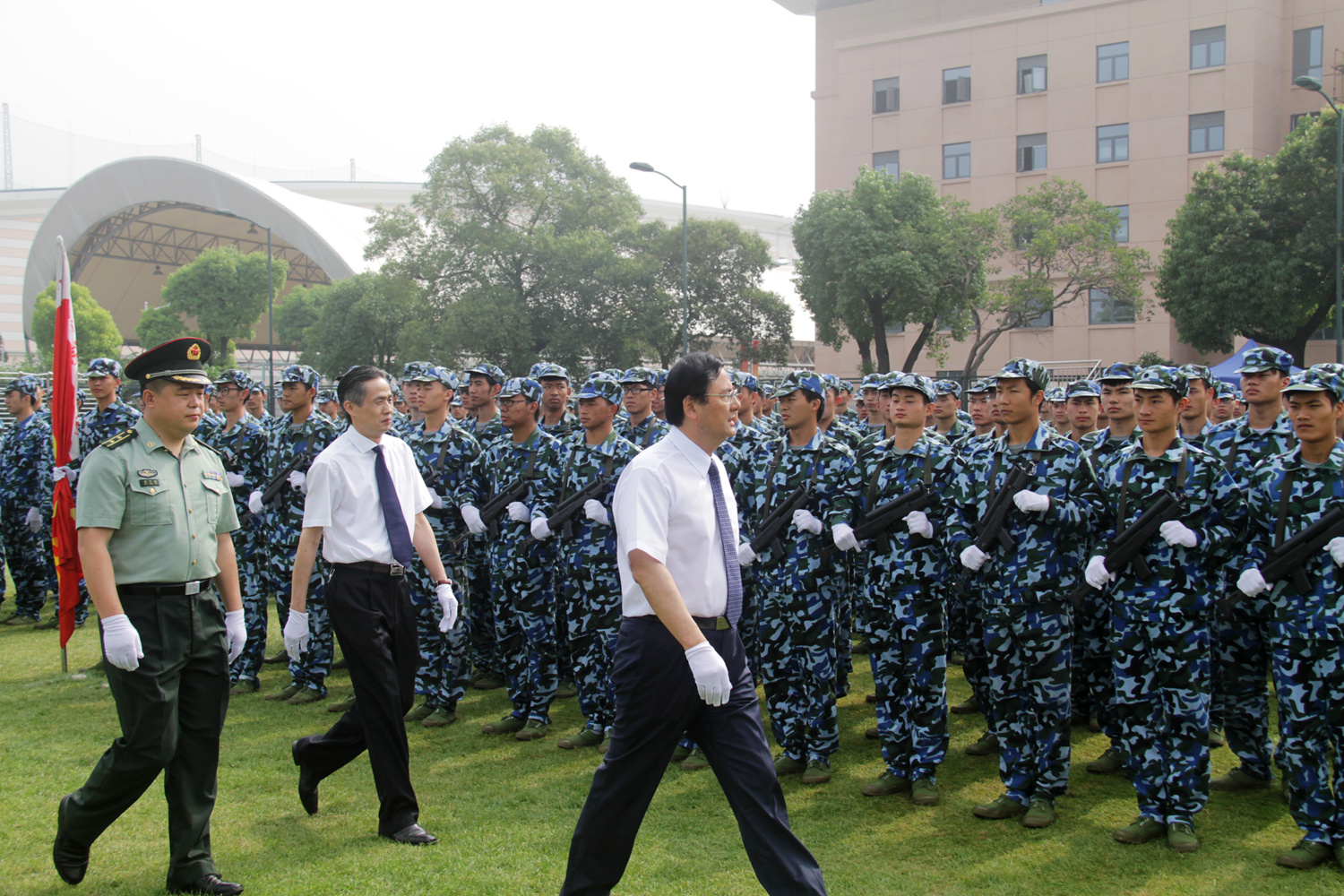 表演结束后,军训工作领导小组组长陈晓峰作军训总结发言。他代表全院师生向为军训工作作出重大贡献的带训部队官兵表示感谢,同时向2013年级990名通过军训锻炼的同学们表示祝贺。陈晓峰认为今年军训工作目标明、方向正、管理严、效果好。在教官的悉心指导下,同学们初步掌握了一定的军事技能,加强了组织纪律性,增强了吃苦耐劳的精神和顽强的意志。这将成为同学们今后一笔宝贵的精神财富。此次军训正值梅雨季节,今年军训工作预案在先,制定了应对高温、雨天的紧急预案,并且行动到位,加之后勤的有力支撑,为今年军训工作圆满顺利完成保驾护航。陈书记希望同学们以军训为起点,继续巩固和发扬集体主义精神,学习上互帮互助,生活中互相关心,珍惜大学时光,秉承上海体育学院“身心一统,兼蓄竞攀”的校训精神,传承和发扬上体精神。
