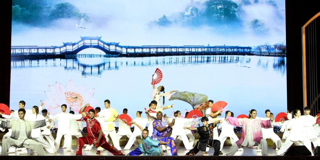 值得一提的是,我院所表演的《太极》是唯一一个由单独高校独立完成的完整节目,节目创编以“和”为主体,结合武术太极这一东方智慧来诠释中国传统文化的精髓。我院师生历经1个多月的刻苦排练,在克服文化、语言、认知等种种差异、困难之后,最终呈现出这台精彩卓绝的演出,充分体现了大会“天地人和,和而不同,和衷共济”的中心主题。