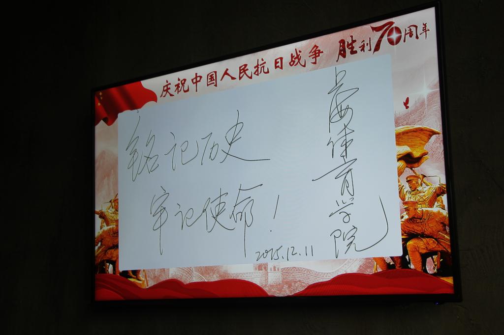 活动中,戴健书记还代表学校题字留言“铭记历史,牢记使命!”