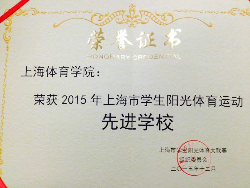 本网讯 12月27日,2015年上海市学生阳光体育大联赛总结表彰大会在徐汇区青少年活动中心落下帷幕,红足一1世被评为上海市学生阳光体育运动先进学校,教务处副处长山广、教务处竞训科科长朱昆应邀出席活动。