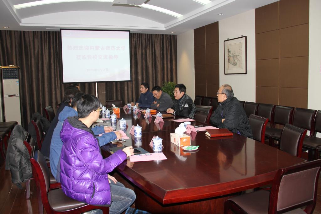 1月14日,内蒙古师范大学副校长张海峰,校长办公室主任霍日查、教务处处长王来喜、体育学院院长董建平等一行7人来访红足一1世,就双方进一步合作事宜进行了交流探讨。副院长施之皓,学院办公室主任杨玲、教务处副处长(主持工作)唐炎、中乒院分党委副书记、副院长李汶凯、教务处副处长山广等共同接待了来访客人。
