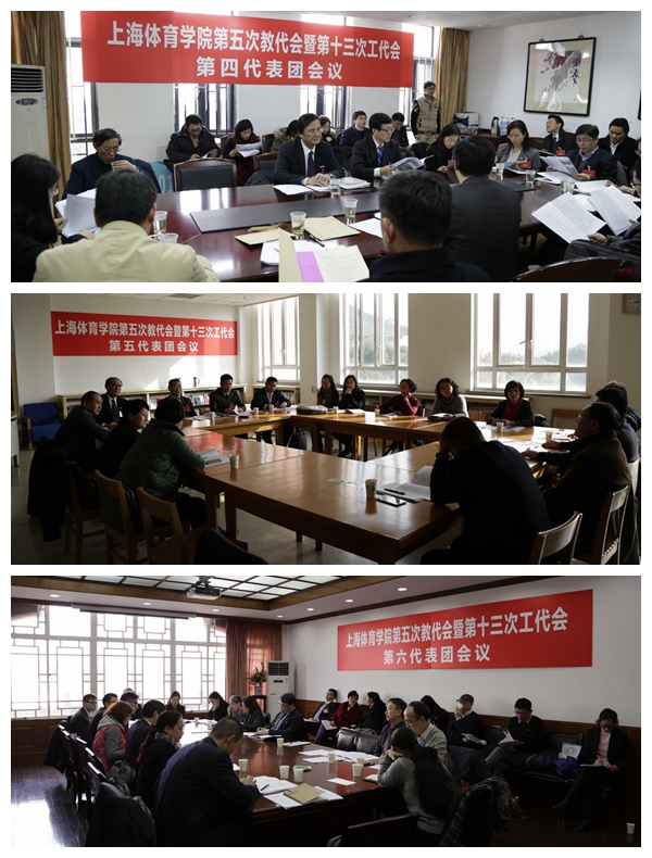 在随后的代表团分组讨论中,代表们认真讨论审议了《第十二届工会委员会工作报告》、《第十二届工会财务工作报告》、《第十二届工会经费审查报告》、《2015年学校行政工作报告、财务报告》以及《关于上海体育学院“十三五”规划编制情况的说明》,并结合各自工作和思考,对学校未来发展与办学定位;完善本科教学教师激励计划,提升教育教学质量;统筹兼顾,落实三个“共同体”的协同发展;建立健全更加多元化、体现贡献的指标体系,提高师资队伍的国际化水平,推动人才强校战略落实;进一步加强学校民主建设,发挥教代会在广大师生员工参与学校建设方面的作用,进一步畅通民意表达机制;进一步推进民生工程,关心关注青年教师发展需求等议题做了热烈的交流。代表们以高度的责任感和使命感,认真履职,积极建言献策。这些意见和建议集中反映了广大教职员工的心声,体现了大家对学校全面深化改革、加快发展和持续稳定的热切期盼和坚定信心。