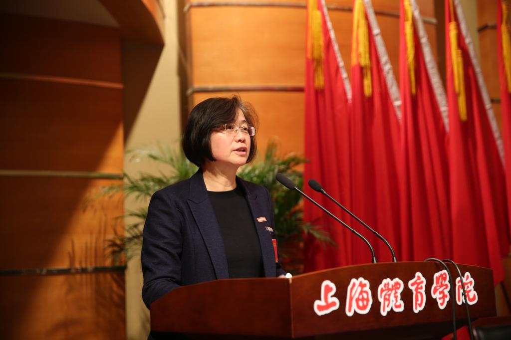 上海市教卫工作党委副巡视员、教育工会常务副主席王向群发表讲话,她代表上海市教育工会对本次大会的召开表示热烈的祝贺,对长期奋斗在工会工作第一线、关心支持工会工作的同志们表示诚挚的感谢!她对工会组织建设的内涵提出了三点想法。第一,要加强和改进党对工会工作的领导。实现坚持党的领导与依法依章程开展工会工作的有机统一,把工会组织的特点和优势作为党组织开展群团工作、推进基层民主建设的重要抓手。第二,要建立实施以全体教职工为主体开展工作的制度办法。增强工会组织对全体教职工的号召力、动员力、凝聚力。第三,要开辟网上平台,大力开展工会网上工作。