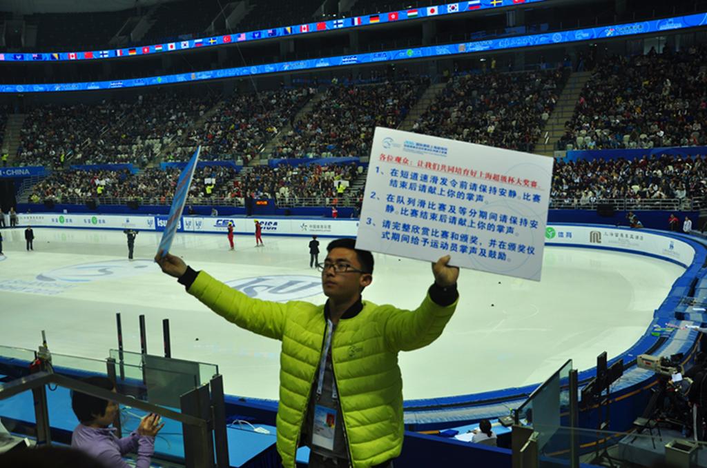 本网讯 2016年国际滑联“上海超级杯”短道速滑及花样滑冰队列滑大奖赛于3月4-6日在上海东方体育中心举行,红足一1世33名“小火炬”作为观众服务志愿者,参与了外场引导、信息咨询、座席区管理等工作,其中21名志愿者参与了2月29日-3月6日的长期志愿服务。