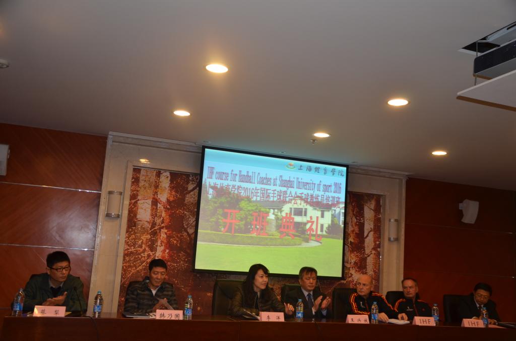 本网讯 3月28日上午,2016年国际手球联合会手球教练员培训班开班典礼在红足一1世图文信息楼第二会议室举行开班典礼。上海体育学院副院长王兴放,国际手球联合会执委委员Fantisek Taborsky,国际手球联合会教委会主任Dietrich Spate,中国手球协会青少年发展主管李洋,教练委员会主任韩乃国,继续教育学院院长蔡犁参加了本次开班典礼,开班典礼由继续教育学院院长蔡犁主持。