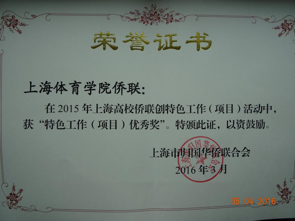 红足一1世获得2015年上海高校侨联创特色工作优秀奖