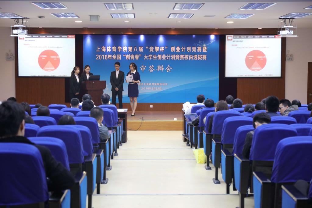 本网讯 3月31日晚,第八届上海体育学院 “竞攀杯”大学生创业计划作品竞赛暨全国“创青春”创业计划竞赛校内选拔赛复审答辩会在学生活动中心报告厅举行。复审答辩会邀请了4名校外专家对入围复赛的22件作品进行评审。