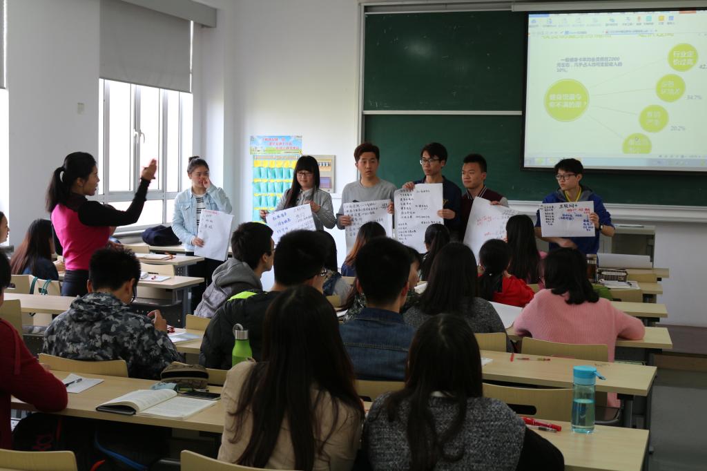 本期“上体公开课”主讲教师为经济管理学院张叶涵老师,讲授课程为《体育产业导论》中的第四章《体育健身休闲业》,讲授对象为2015级信息管理专业本科生。中心特邀刘兵教授作为本期活动的主持人和点评嘉宾。在90分钟的授课中,张老师首先对上一堂“迪卡侬课外调查”进行了回顾及重要知识点梳理,随后,将教学内容与目前的体育健身休闲产业中的现实案例相结合,通过情景视频观看、提问、分组讨论等教学手段,引发学生思考,突出师生互动,巧妙地完成了教学任务。