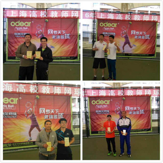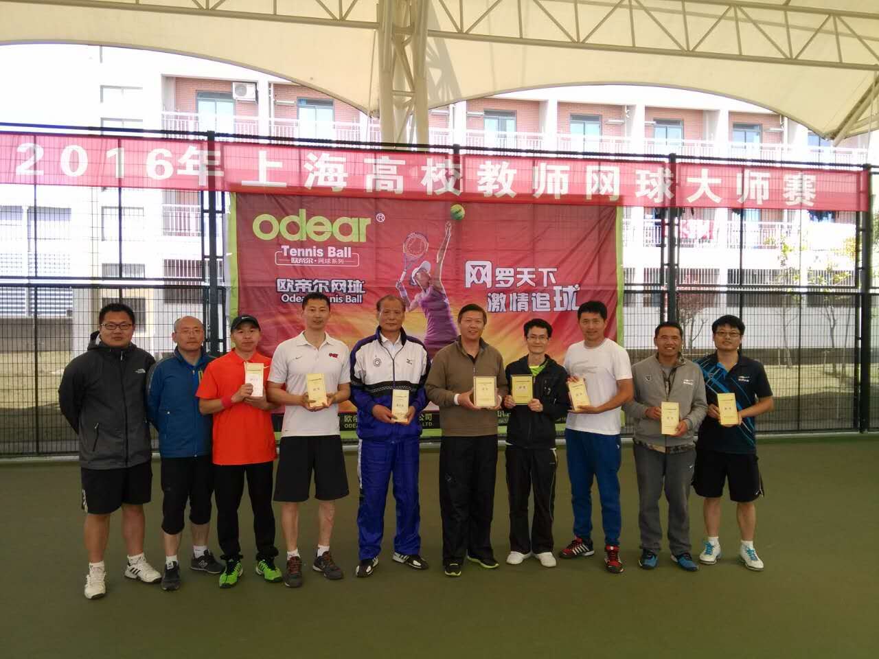 本网讯 4月17日,2016年上海市高校教师网球大师赛在上海海事大学举行,我教职工发挥出色,获得佳绩,吴贻刚、刘东锋获得本次比赛领导组双打冠军,付饶、张辉,钟建荣、康海分别获得教师组双打第一名和第三名,张胜年、史仍飞位列第七名。