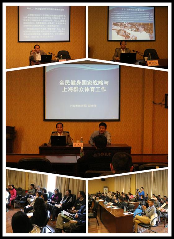 赵光圣教授的报告紧紧围绕“全民健身国家战略”结合上海群众体育工作实际情况展开,深入浅出地作了四方面内容讲述: