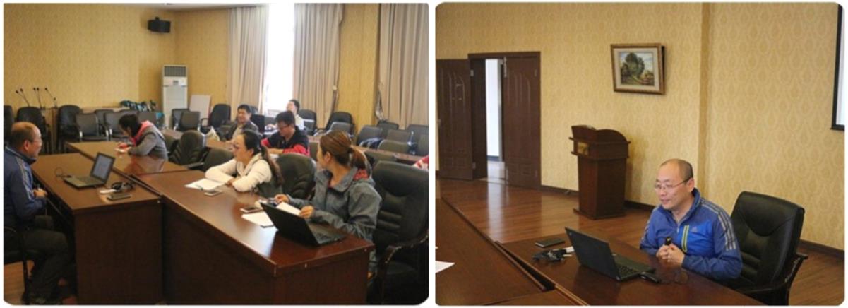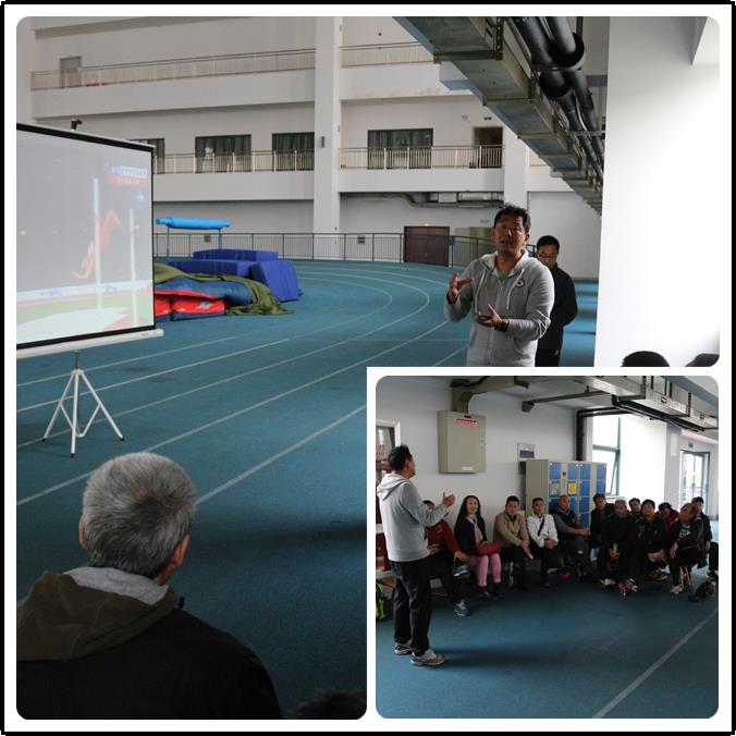 李玉章老师在室内田径场举办题为《互联网+技术在田径“对分课堂”教学中的运用》教学工作坊,由李玉章、唐军老师主讲,田径教学团队共同参与研讨。李玉章老师重点讲述了前期教学研究成果形成的课堂现场反馈系统的运用,即采用苹果手机和苹果盒子以及路由器形成的视频同步反馈教学法,此方法可以非常直观、便捷、快速地让学生观察到自己的动作细节,大大缩短了动作技能形成过程,提高教学效果通过展示课堂实践案例和视频资料与团队的老师们分享了“对分课堂”教学法的应用技巧。唐军老师侧重对跳高项目教学中实施“对分课堂”的教学过程以及具体做法进行了分享和交流。教学团队对这种教学方法、手段,进行了提问、交流,一致认为值得推广;也希望学校能在硬件设备方面给予支持。