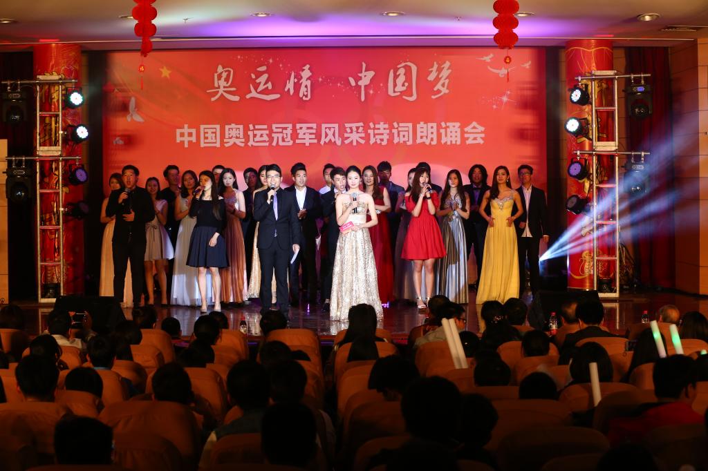 本网讯5月13日晚,“奥运情﹒中国梦——中国奥运冠军风采诗词朗诵会”在绿瓦大礼堂举行。