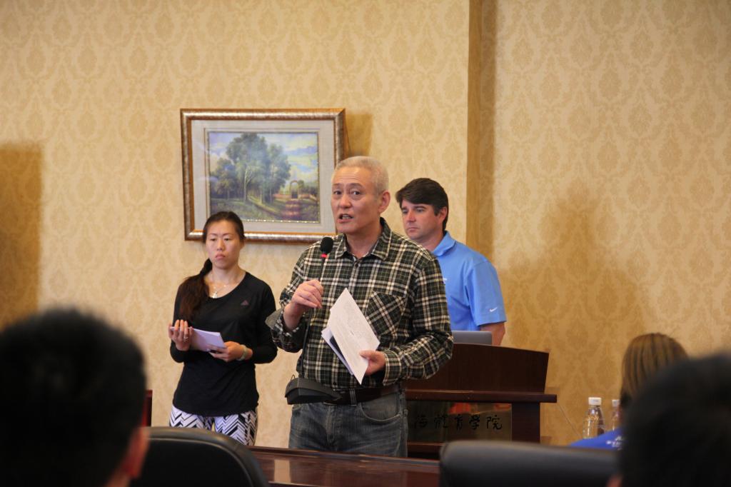 体育教育训练学院院长丁海勇在课程开始之前对Lee Burton博士进行了隆重介绍,并对lee博士和孙莉莉老师表示热烈欢迎,期望在座的学生、教师及体能专业人士在本次课程结束时都可以受益良多。Lee Burton在运动医学和力量训练领域经验丰富,获弗吉尼亚理工大学健康水平与健康促进专业博士学位,持有运动员训练和力量训练(ATSC)国家级证书,多次在美国及世界各地开展运动医学和力量训练领域的讲座。Lee不仅发表了众多运动医学类的期刊论文和书籍章节,还与Grey Cook共同编写了《动作:功能动作系统》(Movement: FunctionalMovement Systems)一书。