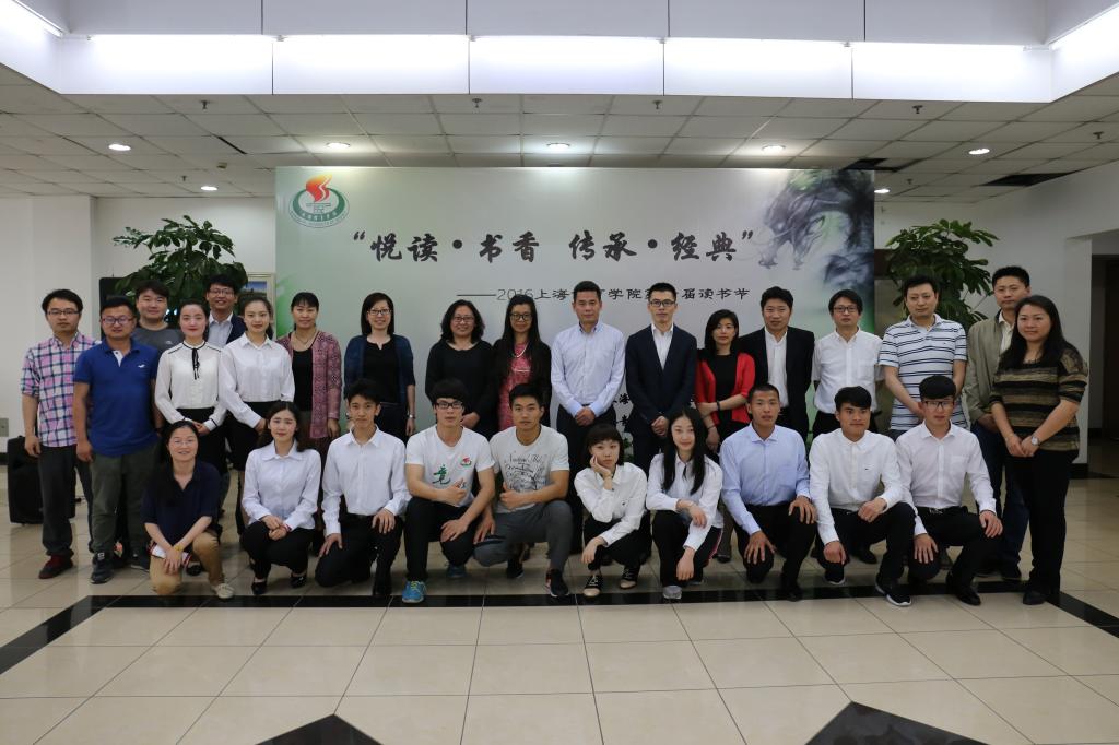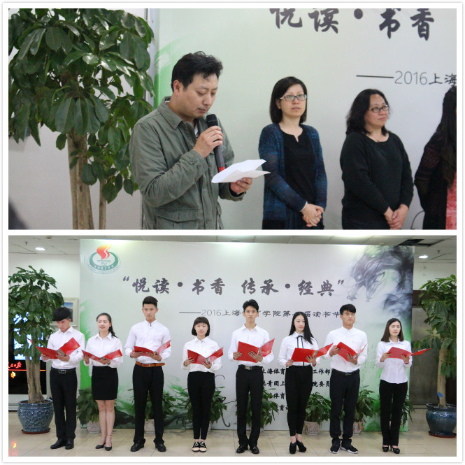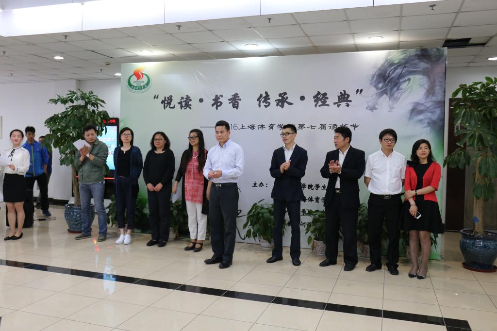 本网讯 5月19日,“悦读·书香 传承·经典”2016年上海体育学院第七届读书节在红足一1世新图书馆隆重开幕。学工部部长熊小健、图书馆馆长张庆文、体育教育训练学院党总支书记赵晓晗、团委书记、学工部副部长梅朵、学工部副部长唐建华、图书馆副馆长冉毅,各二级学院党总支副书记、团总支书记和学生代表共同出席读书节开幕仪式。