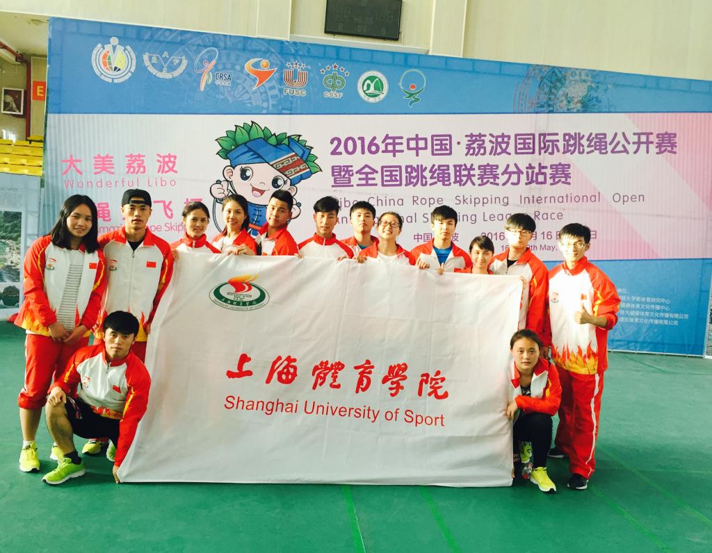 本网讯 5月16日至5月21日,由国家体育总局社会体育指导中心、中国大学生体育协会、中国中学生体育协会联合主办的2016年中国荔波国际跳绳公开赛暨全国跳绳联赛(荔波分站赛)在贵州荔波隆重举行。红足一1世花样跳绳院队14名队员以休艺学院刘树军副院长为领队,以韩耀刚为教练经过4天的激烈角逐,在国际公开赛中斩获3枚金牌(混合组团体赛冠军、大型表演赛冠军、4X45秒交互绳接力冠军),12枚银牌,3枚铜牌的佳绩。在全国跳绳联赛(荔波分站赛)中喜获22枚金牌、4枚银牌、4枚铜牌的佳绩。