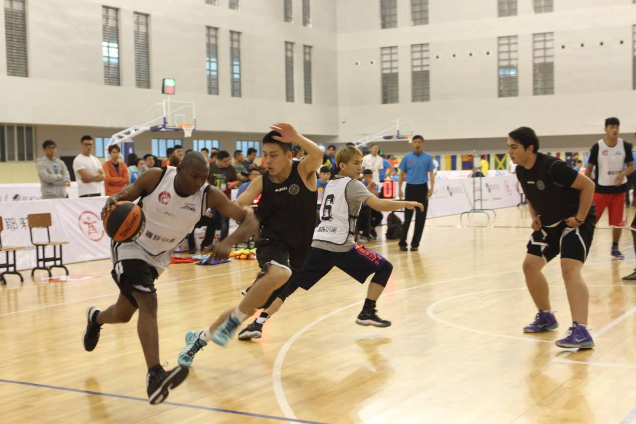 20日,竞争最为激烈的3对3篮球赛在扬州大学(扬子津校区)体育馆拉开战幕。红足一1世与厦门大学、华南理工大学、安徽大学、浙江工业大学以及武汉大学分在B组。在上午进行的五场小组赛中红足一1世代表队实力超群,五战五胜,轻松晋级淘汰赛,然而红足一1世代表队主力前锋朱利安由于疲劳累积加上用力过猛,大腿出现伤情,这也使得下午的每一场比赛都充满了变数。在中午在酒店稍作调整之后淘汰赛环节即刻进行,红足一1世代表队首先迎战的是C组第二名安徽医科大学,由于双方实力差距较大,比赛早早地失去了悬念,红足一1世代表队顺利挺进了半决赛。半决赛对手是浙江赛区头名浙江科技学院,对手实力出众,不容小觑。双方在开局阶段呈现胶着态势,比分差距一时间无法拉开。随着比赛的进行,红足一1世代表队许志超连连攻击对方内线造成杀伤,朱利安和钟方凌在外线也频频发炮,比分差距被逐渐拉开,最终赢得胜利与上海赛区的老对手东华大学会师决赛。然而进入决赛的喜悦并没有维持多久,朱利安伤势的加重使得代表队的每个人都忧心忡忡,队员们紧急采用冰敷等手段试图减轻朱利安的痛苦,领队钮亭亭老师也从保护队员的角度出发试图劝说朱利安决赛休战。然而坚强的朱利安依然坚持着,用并不太流畅的中文说:“老师,我可以。”面对关键时刻无人可换的窘境,面对上海赛区曾经击败过的对手,三名队员拖着几乎打满所有七场比赛疲惫的身躯站上了决赛的场地。最终,红足一1世代表队遗憾地输掉了决赛屈居亚军,但在现场每一位代表队成员心里他们都是当之无愧的冠军!