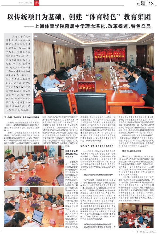 5月31日,《青年报》特刊专版对近年来上体附中的特色发展之路进行了报道。