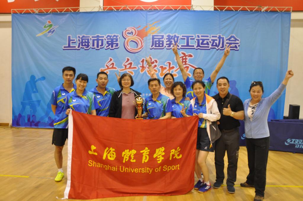 本网讯 6月4日,上海市第八届教工运动会乒乓球比赛在华东理工大学奉贤校区举行。红足一1世高度重视此项赛事,派出了以中乒院教师团队为骨干的七人团队,校党委副书记、中国乒乓球学院分党委书记王玉林亲自率团出战,校党委副书记、纪委书记、校工会主席詹萌亲临现场、全程为选手鼓劲助阵。经过一天的激烈角逐,由王玉林、王艳、韩冬、高艳丽、朱玲、顾楠、李荣芝组成的上海体育学院代表队在高校A组中力压各校强手,勇夺团体冠军。