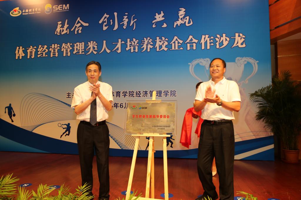 会上上海体育学院党委副书记陈晓峰和上海市体育局副局长赵光圣共同为“上海体育学院经济管理学院学生职业发展指导委员会”揭牌,上海体育学院经济管理学院指导发展委员会正式成立。
