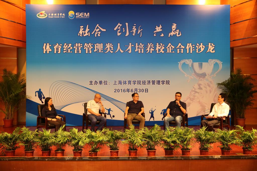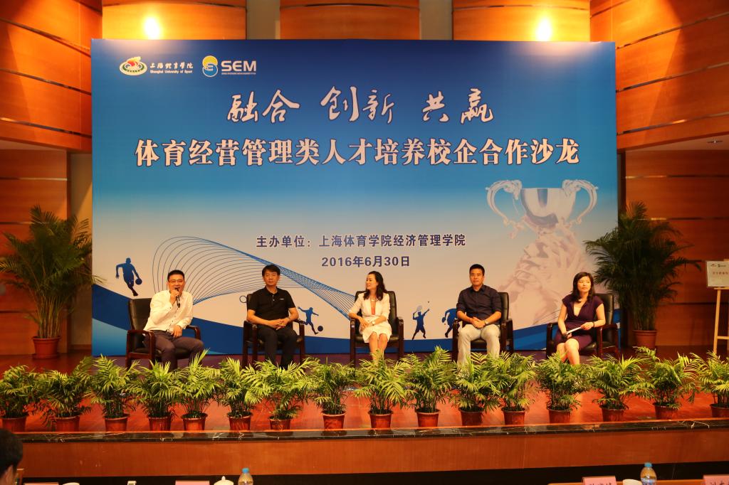 以“融合 创新 共赢”为主题的首届体育经营管理类人才培养校企合作沙龙于6月30日下午13点30分在上海体育学院图文信息楼召开。本次活动由上海体育学院经济管理学院主办,上海东亚体育文化中心有限公司、阿里体育有限公司、盛力世家体育文化有限公司、上海东浩兰生赛事管理有限公司、乐视体育、宝胜国际控股有限公司、上海星扬体育文化发展有限公司、上海擎宸企业管理有限公司、上海衍申文化传播有限公司、众体体育活动策划有限公司、上海铂立盈讯营销策划有限公司、上海跃动文化传播有限公司、上海力盛赛车文化股份有限公司、上海华体西可体育发展有限公司、上海冠博体育投资管理有限公司、AEG、上海有以信息科技有限公司的主要负责人到场,共赴体育产业盛宴,分享专家智慧!