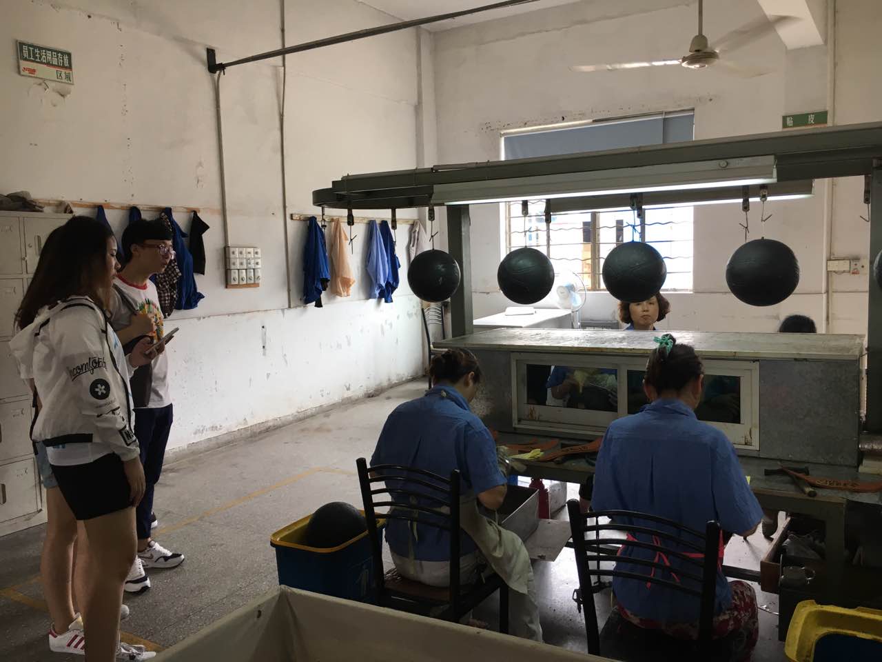 当然除了乒乓球,红双喜公司还生产很多其他体育产品,杨总带领师生们参观了足球、篮球和排球这三大球的加工制作过程,让大家一饱眼福。