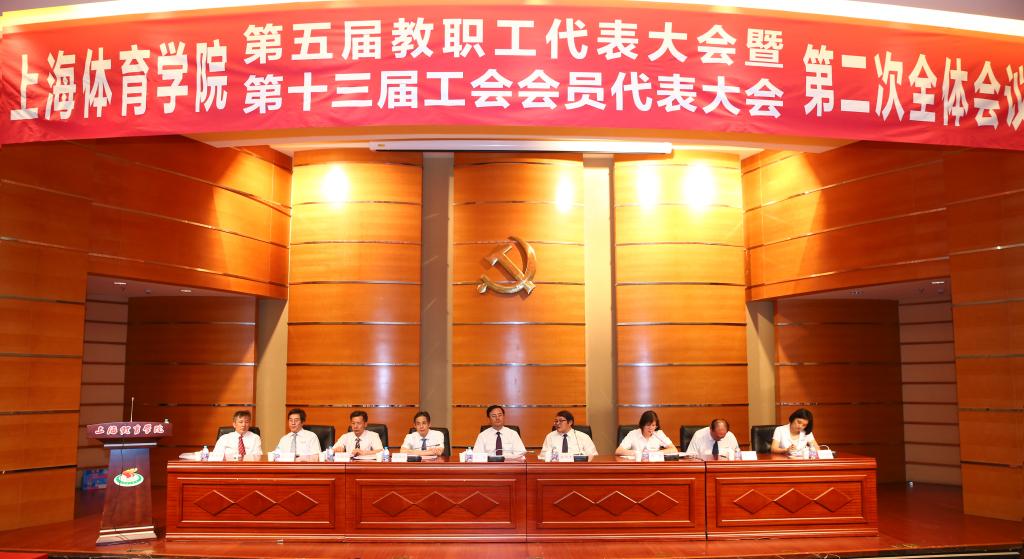 本网讯 7月14日全天,上海体育学院第五届教职工代表大会暨第十三届工会会员代表大会第二次全体会议胜利召开。会议审议了《上海体育学院“十三五”改革和发展规划(2016-2020年)(审议稿)》,审议讨论了《上海体育学院“双代会”提案工作实施办法(审议稿)》。学校党政领导、教职工代表、工会会员代表、离退休老同志代表等120余人参会。会议由校党委副书记、纪委书记、工会主席詹萌主持。