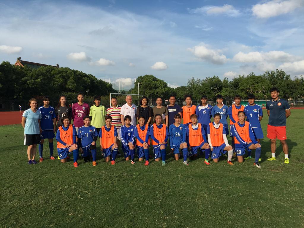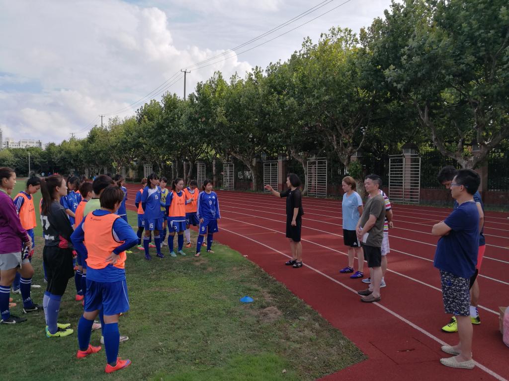 毛丽娟代表学校向正在训练的女足教练员和队员表示关心和慰问,向女足队员不畏高温,刻苦训练,发扬铿锵玫瑰的拼搏精神表示钦佩,祝福大家健康快乐的成长,相信在教练员的带领下,在学校各相关部门的保障下,女足队员一定能取得佳绩,再创辉煌。