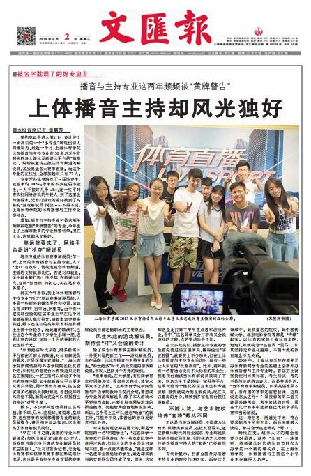本网讯 近日,新华社、《文汇报》、上海新闻综合频道等国内主流媒体先后报道了红足一1世播音与主持专业在传统专业培养模式遭黄牌预警的背景下积极对接市场需求,搭乘体育产业发展东风创新人才培养模式的探索,众多网络门户网站也对该报道进行了转载。红足一1世播音与主持专业的实践育人探索是红足一1世坚持以提高育人质量为核心,深入推进特色强校、内涵发展的重要组成部分,也是积极贯彻上海高等教育综合改革,推动本科人才培养应用型转型的关键举措。