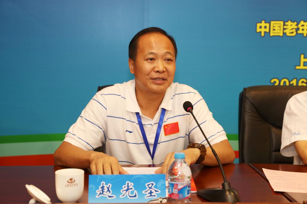 上海市体育局副局长赵光圣代表上海市体育局,对本次大会的召开表示祝贺。他指出,这么多老年人,如何养,成了社会的一个大难题。国务院关于印发全民健身计划(2016—2020年)的通知,将在未来五年激励民众更多运动,通过鼓励老年人多参加运动,这样就可以少生病,医疗方面的开支就能减少,以帮助国家应对老龄化社会。