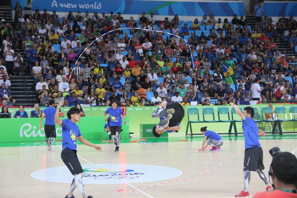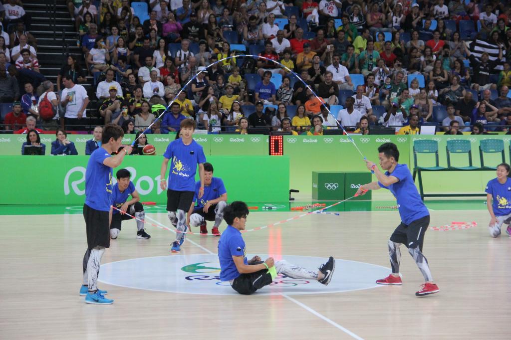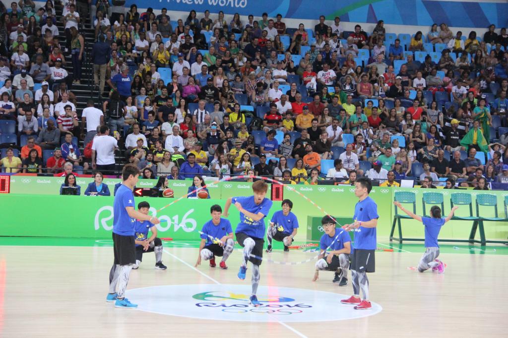 本网讯 巴西时间8月21日是举世瞩目的第31届奥林匹克运动会闭幕的日子,下午男子篮球金牌争夺战颇受关注,里约奥运室内最大馆16000人ANEAN CARIOCA 1内座无虚席,比赛中场时间16:15-16:20分由上海体育学院携手上海跃动跳绳俱乐部及两名外籍跳绳世界冠军共同组成的国际奥运跳绳表演队惊艳亮相,充满节奏与力量的花式动作、快速整齐的队形变化、多元融合的表演风格,激情绽放,吸引眼球,现场16000余名观众掌声不断,享受中国上海体育学院花样跳绳带来的青春跃动和创新世界的快乐。