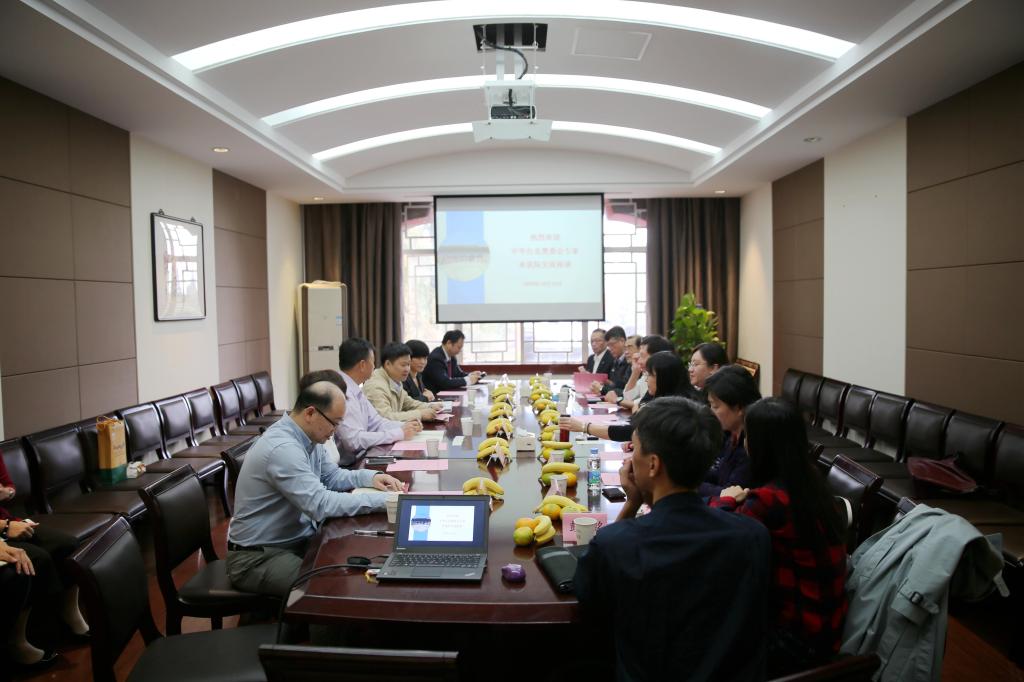 随后,中华台北奥委会代表团与经济管理学院体育赛事中心围绕“赛事研究中心成立目的、业务内容、组织架构、组织成员分工”等议题进行了座谈会,会议由经济管理学院曹可强院长主持,黄海燕教授向中华台北奥委会代表团方汇报了红足一1世赛事研究中心成立目的、发展历程等内容。