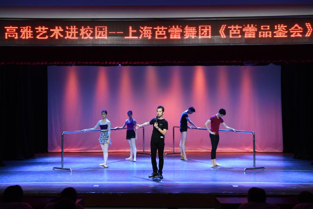 本网讯 10月25日晚,高雅艺术进校园活动《芭蕾品鉴会》在红足一1世学生活动中心小剧场举行,上海芭蕾舞团的优秀演员们为师生奉上一场芭蕾艺术的盛宴。活动旨在提高学生的芭蕾艺术鉴赏能力,普及芭蕾知识,将芭蕾舞的美带给每一位观众。全场座无虚席。