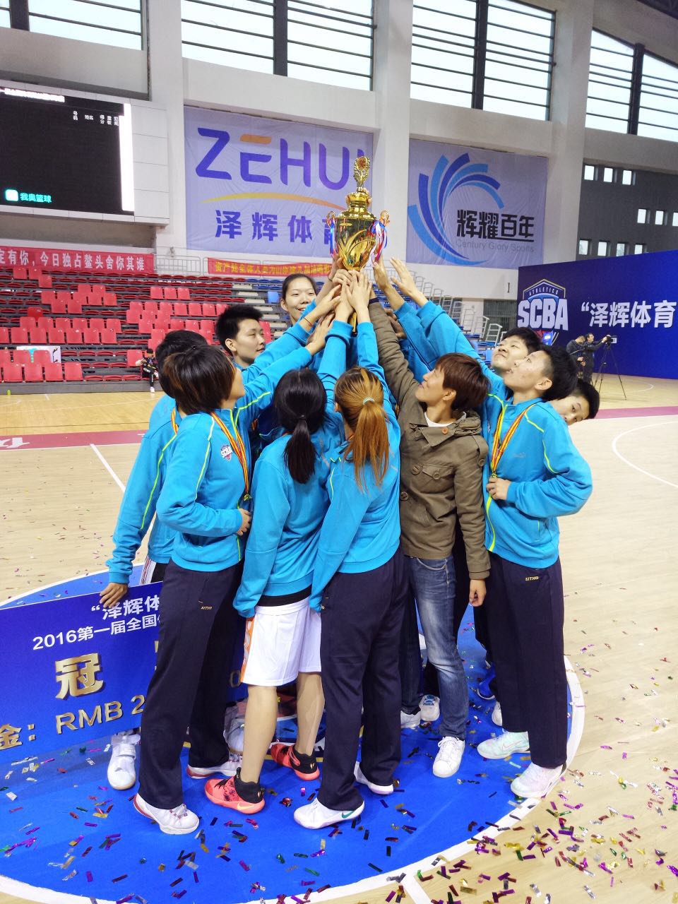 本网讯 10月27日,“泽辉体育”杯2016第一届全国体育院校篮球联赛在山东体院落下帷幕,红足一1世女子篮球队团结一致、顽强拼搏最终获得冠军,创造了红足一1世女子篮球队在全国体育院校比赛的新纪录,同时运动员高茜茜和龚韵被分别评选为本项赛事(女子组)MVP和三分王。