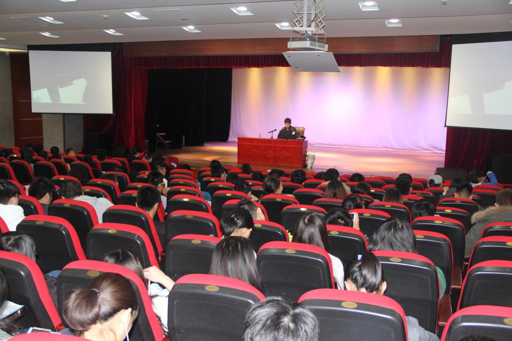 本网讯针对各类诈骗案件频发的情况,为增强我院师生自我保护和防范的能力,11月2日武保处和学工部邀请上海市公安局文保分局沪东派出所谢晔警官来我院进行防诈骗知识讲座。讲座由武保处治安科科长孙艺主持,谢晔警官主讲,部分师生代表到现场听取讲座。