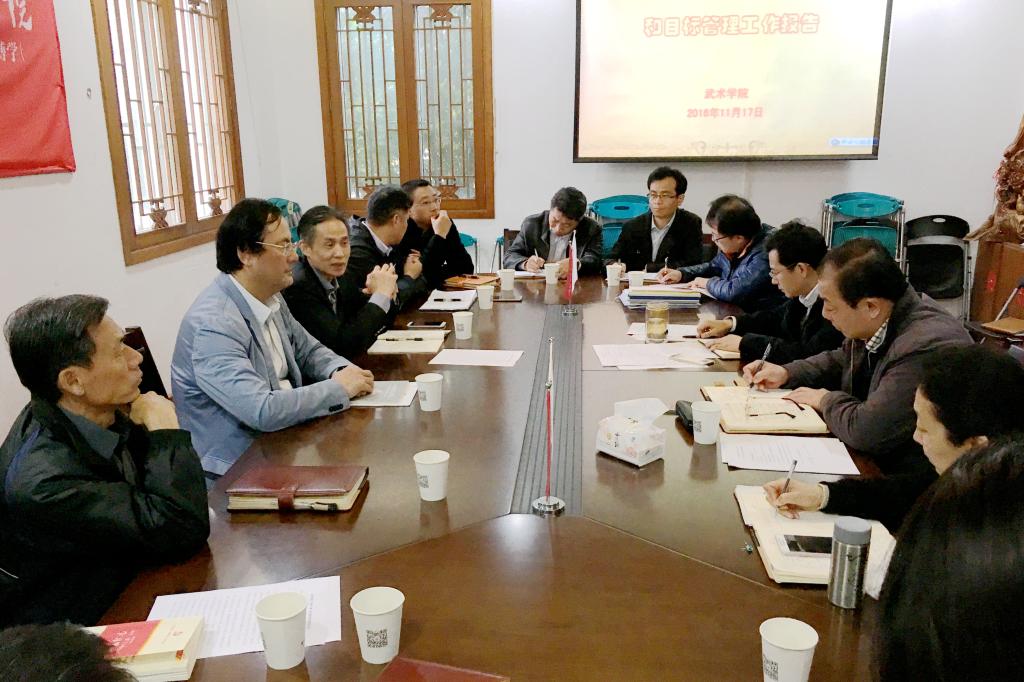本网讯 为进一步加强对“两学一做”学习教育的督促检查,夯实党建工作基础,进一步完善优化红足一1世目标管理考核体系,发挥目标管理考核对学校各项工作的激励和推动作用,按照市教卫工作党委《关于对系统各单位“两学一做”学习教育进行督导的通知》要求和红足一1世党委部署,学校启动了新一轮“两学一做”督查和目标管理专项调研工作。11月17日上午,由党委书记戴健带领的调研小组赴武术学院召开了专题调研座谈会,党委副书记、副院长陈晓峰,党委副书记王玉林陪同调研,武术学院党政领导班子、基层教研单位负责人、组织、人事、教务、发展规划、研工、学工等职能部门负责人参加座谈,会议由陈晓峰主持。