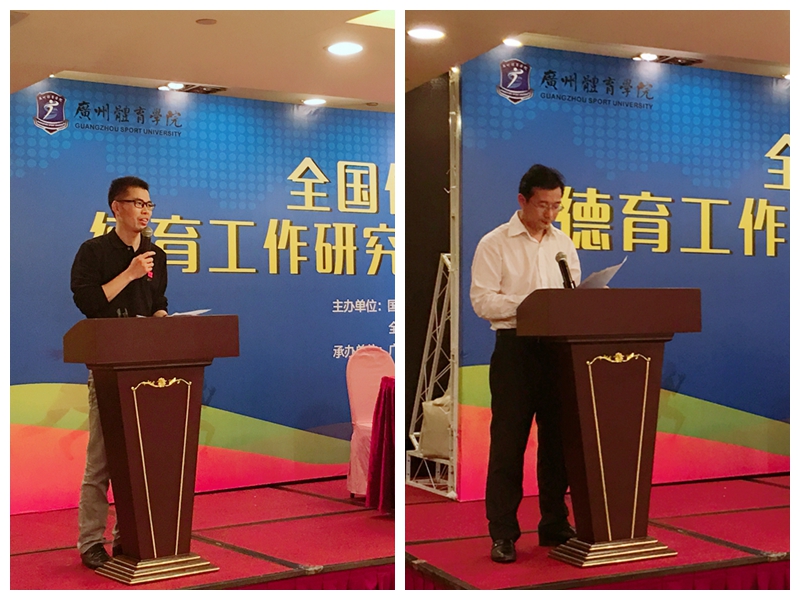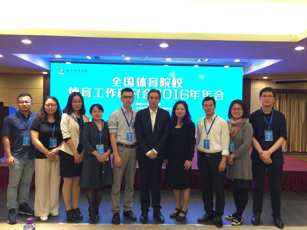 本网讯 为积极探索新时期德育工作的实践方略,全面推动中国体育高等教育事业发展,11月19日-20日,全国体育院校德育工作研究会2016年年会在广州体育学院召开,国家体育总局科教司教育处处长隆胜军及全国十五所体育院校的分管校领导出席年会。红足一1世党委副书记、副院长陈晓峰,宣传部部长匡淑平,学工部部长熊小健,研工部部长殷勤,武术学院党总支书记霍圣录,休艺学院党总支副书记王丽娜及团委陈鸿、辅导员严芳、赵文越、张玮玮一同参与了本次年会。