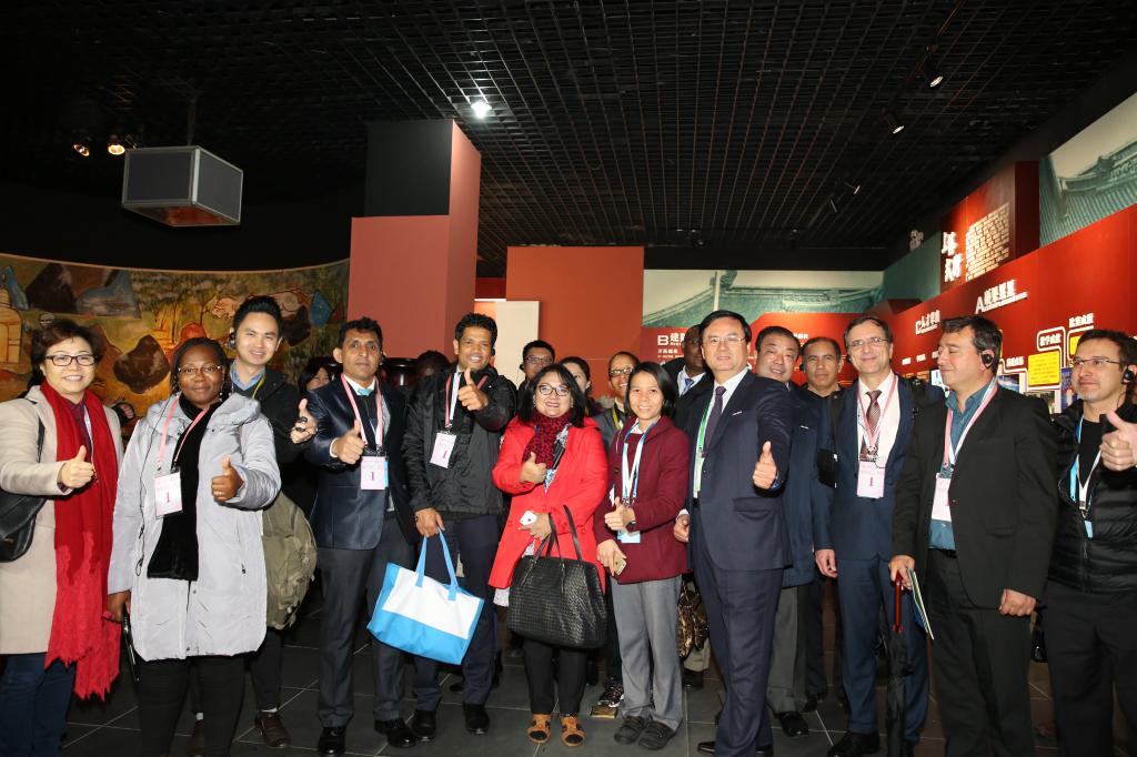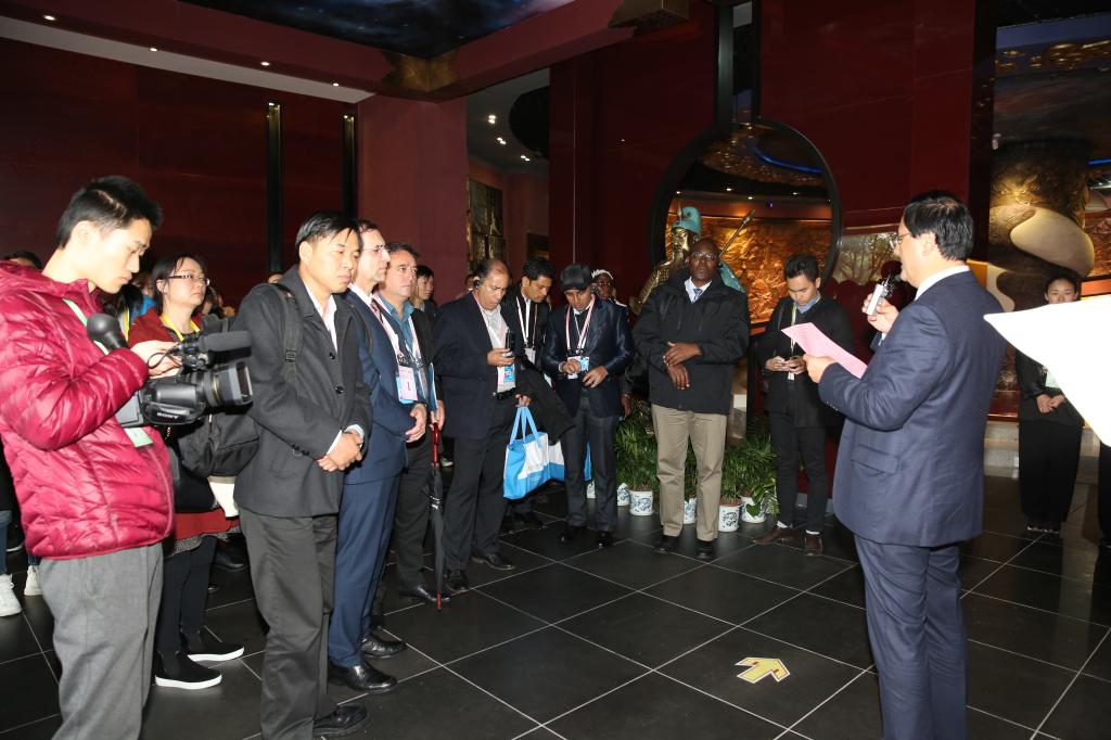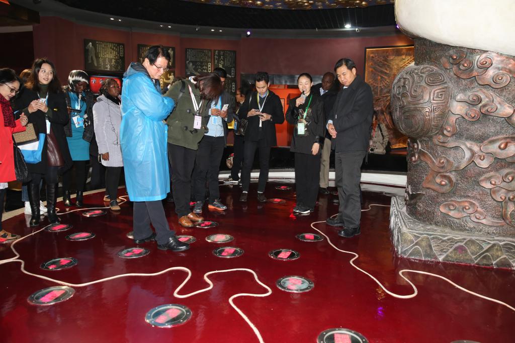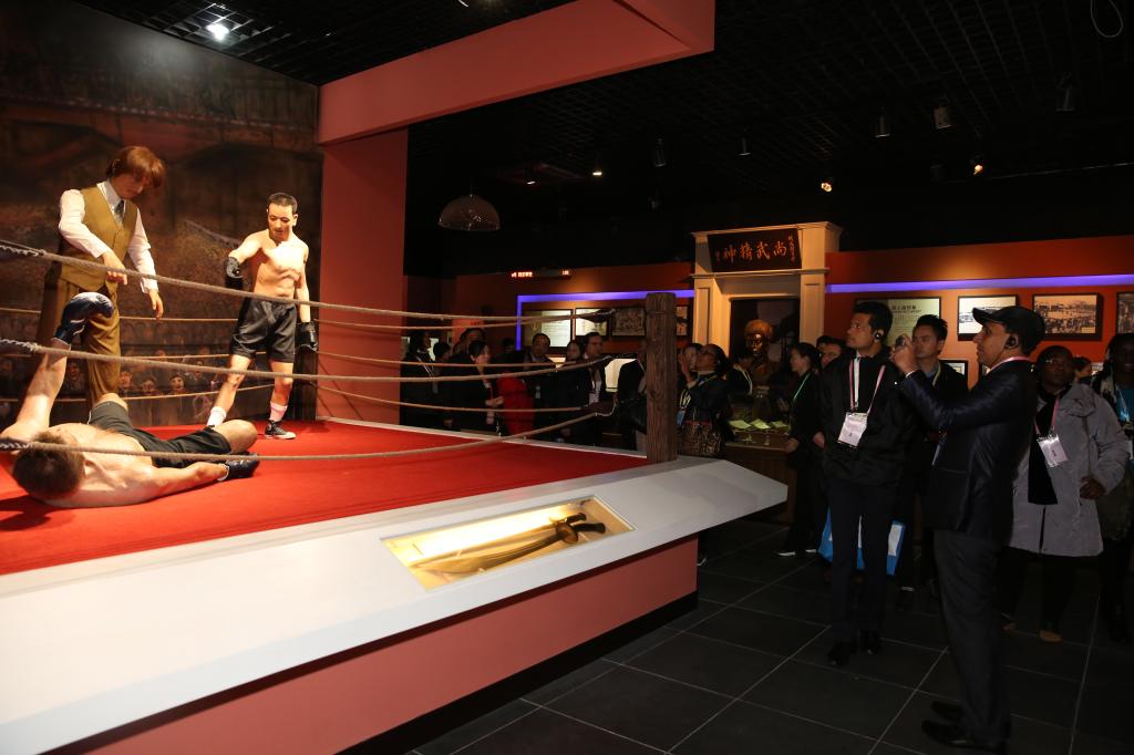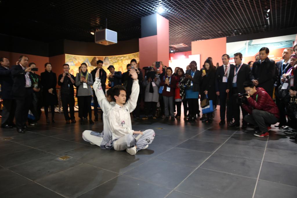 与会的世界卫生组织专家们在讲解员的引导下,相继参观了序厅、拳械厅、历史厅和临展厅,通过一件件历史文物和陈列设计,了解中国武术从起源发展到逐步繁荣的发展脉络,现场还进行了太极拳表演并安排了互动体验环节。