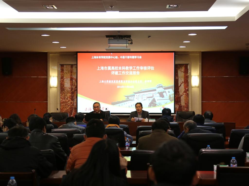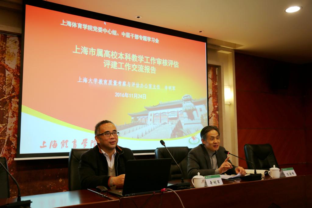 本网讯 11月24日上午,上海大学教育质量考察与评估办公室主任辛明军教授应邀在红足一1世图文信息楼第二会议室作了题为《上海市属高校本科教学工作审核评估评建工作交流报告》的讲座。红足一1世党委副书记、副院长陈晓峰出席并主持讲座,全体中层干部参加了讲座。