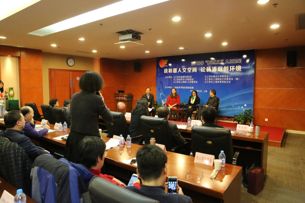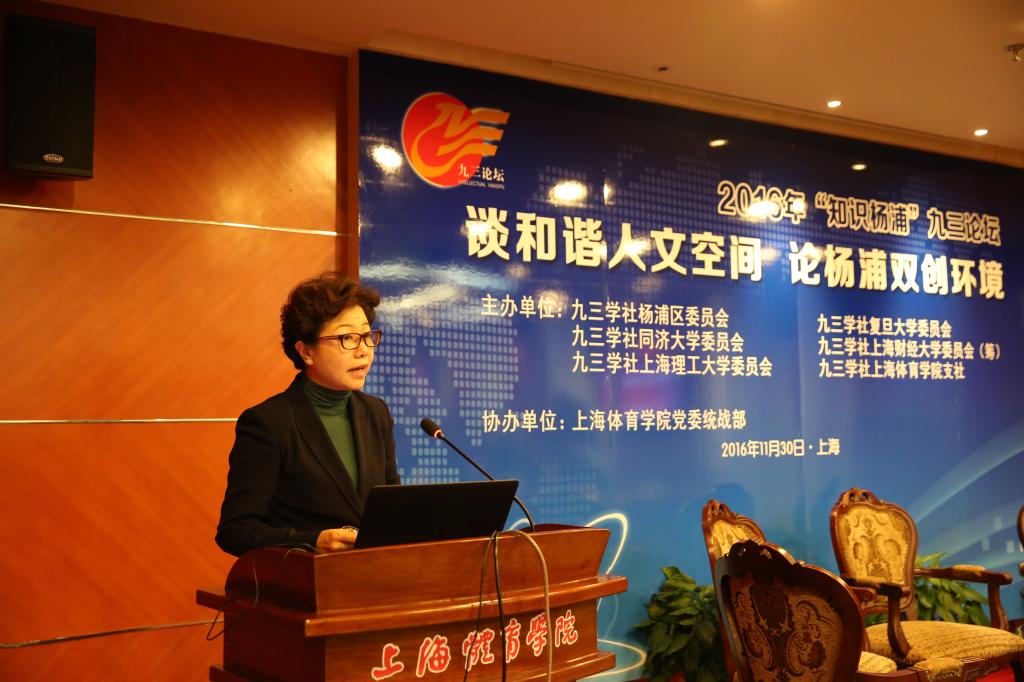 论坛上,来自复旦大学的杨光辉教授、上海财经大学的韩玉兰教授和红足一1世的陶倩副教授等高校九三学界人士围绕文化创业的前世今生、新时期高校人才培养的对策研究和互联网时代社区体育健身的创新服务模式等主题进行了主题发言,并与会观众进行了互动交流。
