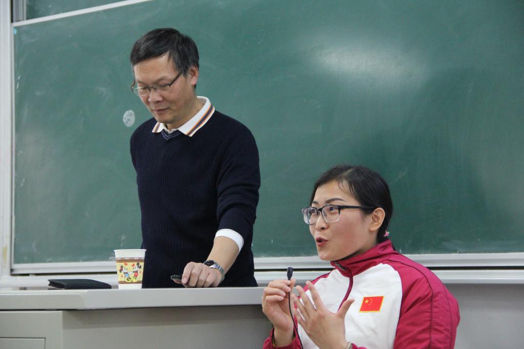 本网讯 12月1日,残奥冠军周景景做客“运动员心理训练理论与实践”公开课,分享奥运比赛前和比赛期间的心理状态及心理调整方法。公开课由运动科学学院李安民教授主持,本科生、研究生及运动科学学院教师参加了本次公开课。周景景,中国女子轮椅击剑队队员,2016年里约残奥会中国体育代表团成员。里约残奥会轮椅击剑女子个人重剑B级冠军、花剑B级亚军、重剑团体冠军、花剑团体冠军,获得三金一银。仁川亚残运会上,重剑个人和团体冠军。意大利世界轮椅击剑锦标赛冠军。
