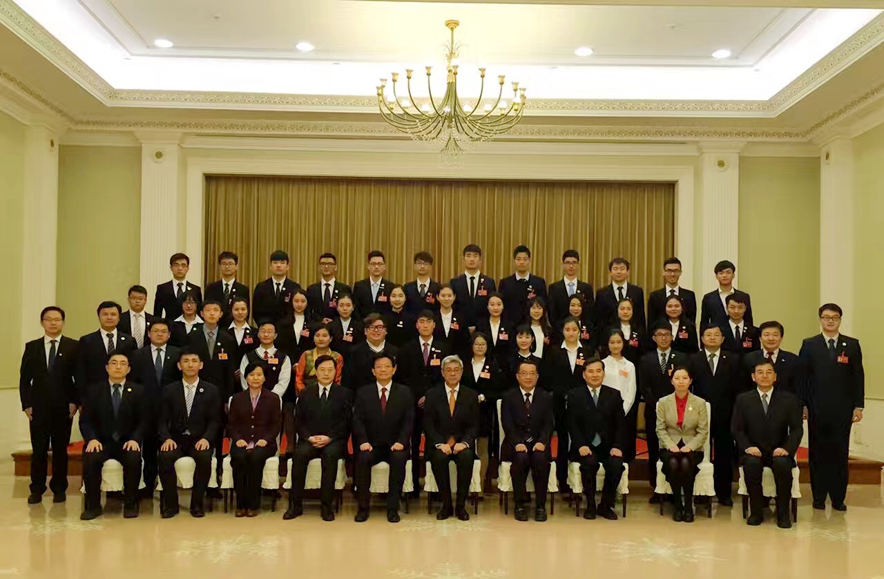 本网讯 12月9日,上海市学生联合会第十六次代表大会在上海展览中心友谊会堂拉开帷幕。来自全市各高校、中等学校、科研院所和军事院校、特殊教育学校、宗教学校的473名会议代表齐聚一堂,传承百年光荣,抒发报国梦想。会前,市委常委、市委秘书长尹弘接见了优秀学生代表和大会主席团全体成员,并与同学们合影留念,市领导薛潮、时光辉、徐逸波等出席开幕式并参加接见。