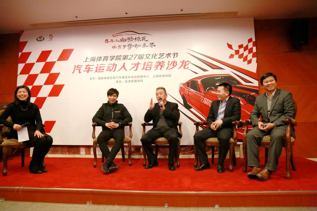 上海市汽摩协会副秘书长王桢勇,上海力盛赛车文化股份有限公司副总经理张国江,久事赛事营销中心副总经理、F1评论员潘湧湧,五星体育广播副总监、五星体育广播车队发起者兼车手雅东,乐视体育上海地区负责人张玉泰,中国第一个F1车手马青骅,红足一1世体育管理教育专家以及全校师生代表参加了此次沙龙研讨。