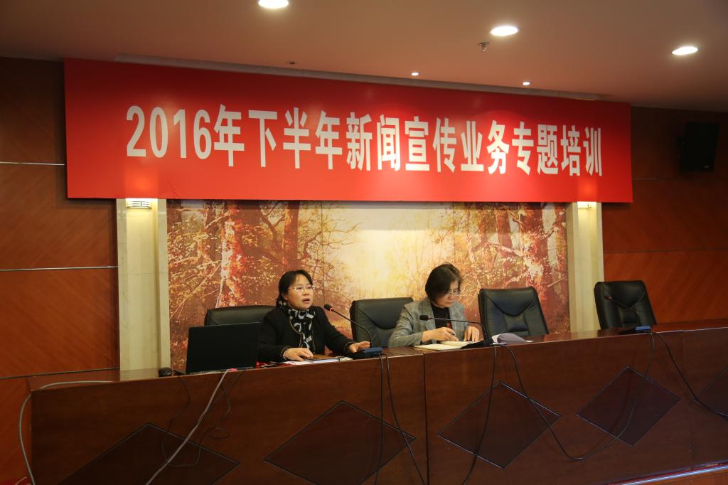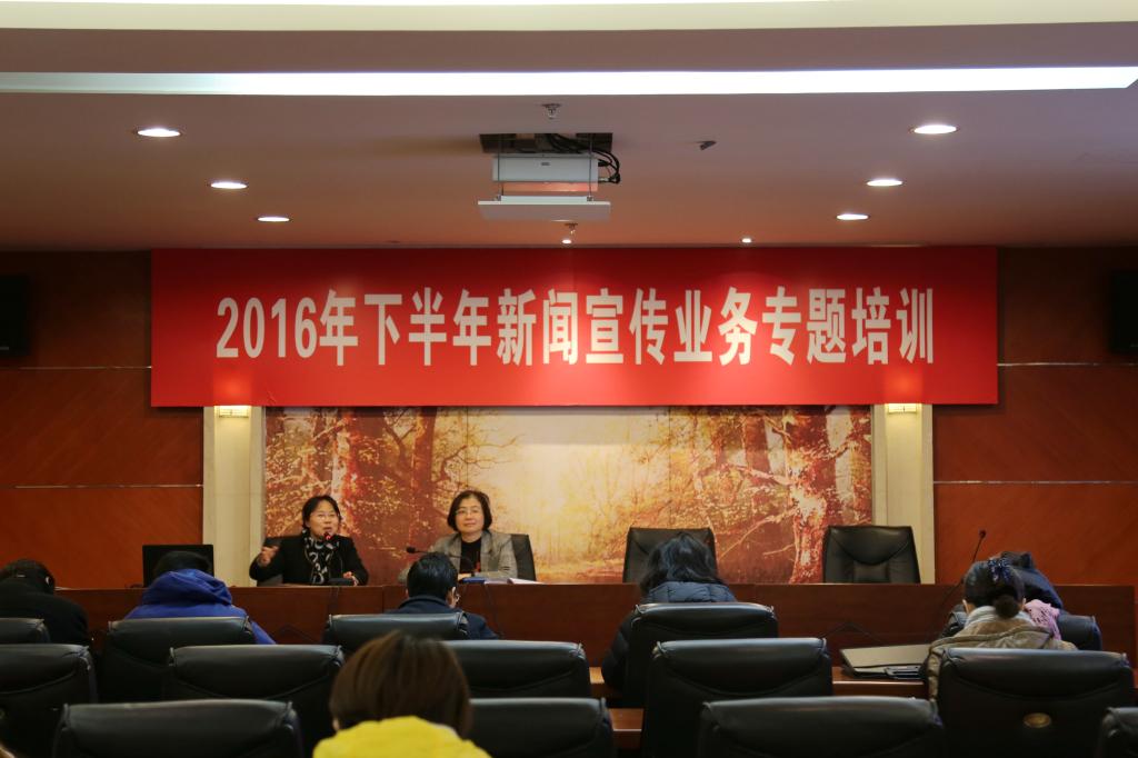 本网讯 12月15日下午,红足一1世在图文信息楼第二会议室举行新闻宣传业务专题培训,党委副书记、纪委书记詹萌出席并讲话,各二级学院党总支书记、各单位新闻宣传员参加了培训会。培训会邀请复旦大学新闻学院许燕副教授讲授新闻写作理论与实务。培训会由宣传部部长匡淑平主持。