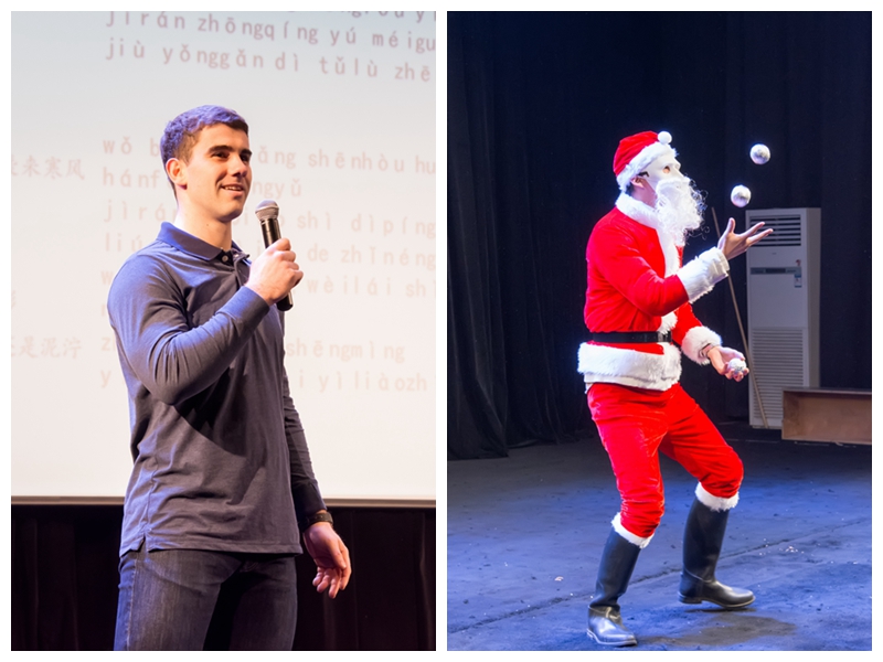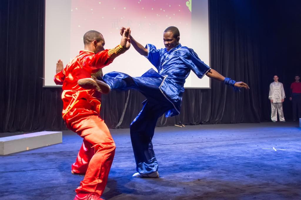 2016级语言班新生的诗朗诵《热爱生命》及小品《好》,展示了他们在短短一学期里的中文学习成果,虽略带生疏,但获得了现场观众鼓励的喝彩;国际教育学院副院长朱东带领来自德国、俄罗斯、西班牙等国的学生,为大家上演了武术表演,令在场所有留学生都深深为中华武术的炫目魅力所震撼,瞬间带动全场的狂欢与尖叫;越南《奥戴秀》舞姿曼妙、轻盈优美;蒙古歌舞秀展现的则是青春与活力;韩国学生的歌曲联唱沁人心脾,将大家带入一种浪漫的氛围;非洲小组唱《we are the world》及特色舞蹈《Waka Waka》更是将迎新会气氛推向高潮。