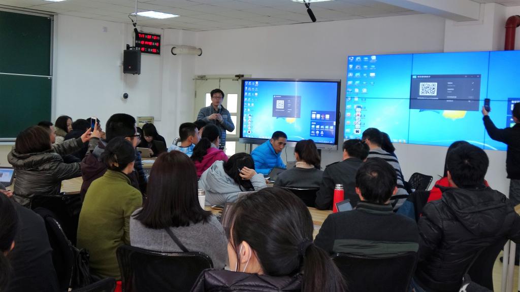 培训课上,培训师简要讲解了智慧教室的使用操作的基本流程。接着重点讲解了设备管理、电子白板、录播、师生互动等各项功能。并让参加培训的教师共同体验了智慧教室的各种功能,也让参加培新的教师们体验了信息化给教育带来的优良效益。