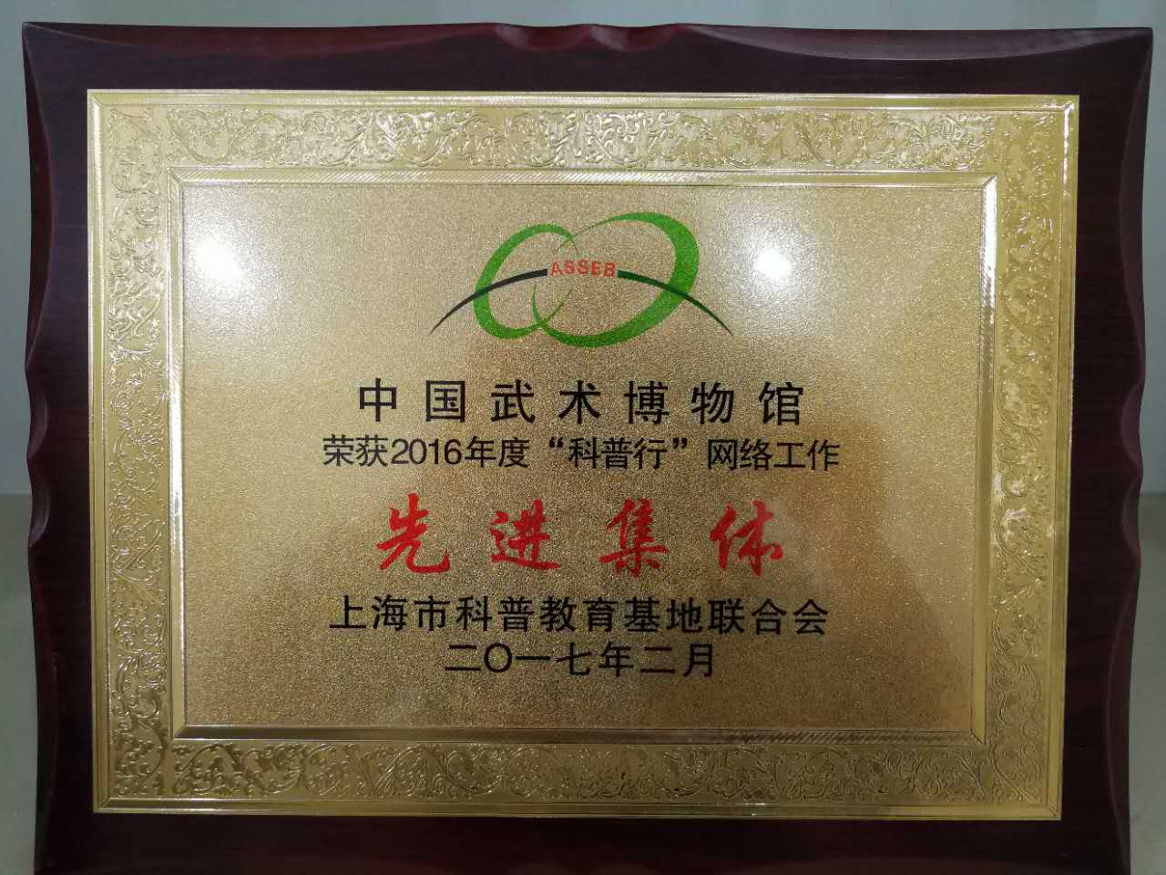 本网讯 近日,在2016年上海市科普教育基地会员大会上,我院中国武术博物馆荣获“2016年度上海市科普教育基地先进集体”称号、“2016年度科普行网络工作先进集体”称号,这是该馆自2008年成为上海市科普教育基地后第5次获此称号。同时,我馆工作人员刘先萍获“2016年度优秀网络管理员”,讲解员李小华获“2016年度优秀科普讲解员”,这也是我馆连续3年获此殊荣。