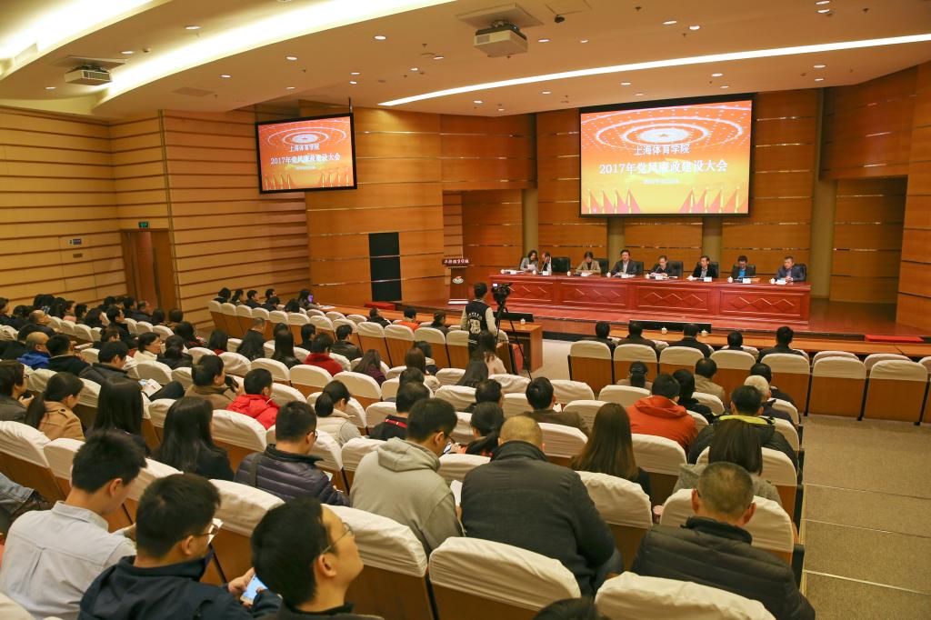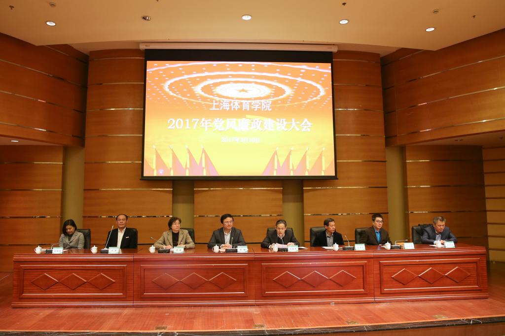 本网讯 3月10日上午,上海体育学院2017年党风廉政建设大会在图文信息楼报告厅召开。党委书记戴健出席会议并讲话。党委副书记、副院长陈晓峰主持会议,党委副书记、纪委书记詹萌总结学校2016年党风廉政建设工作,并部署2017学校党风廉政建设工作任务。党委副书记王玉林,副院长平杰、施之皓、毛丽娟、王兴放出席会议。